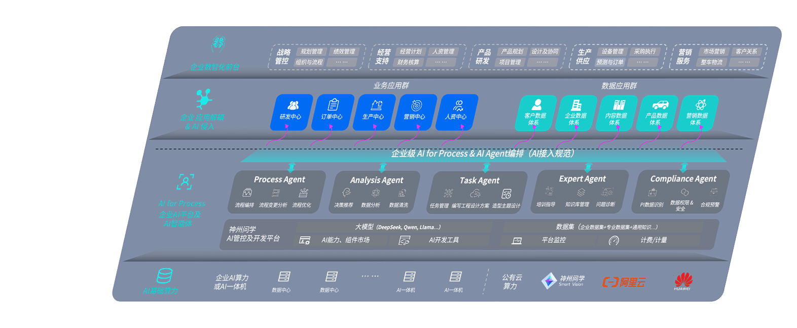 端到端的一站式AI工作空间深度融合了从企业战略规划到日常经营的全流程业务板块,,定向解决车企内部领域多、、、、部门多、、、链条长、、场景碎片化等难题,,支持车企快速构建以AI为核心的生产力写作体系,,,实现任务执行与AI能力的无缝集成与交互