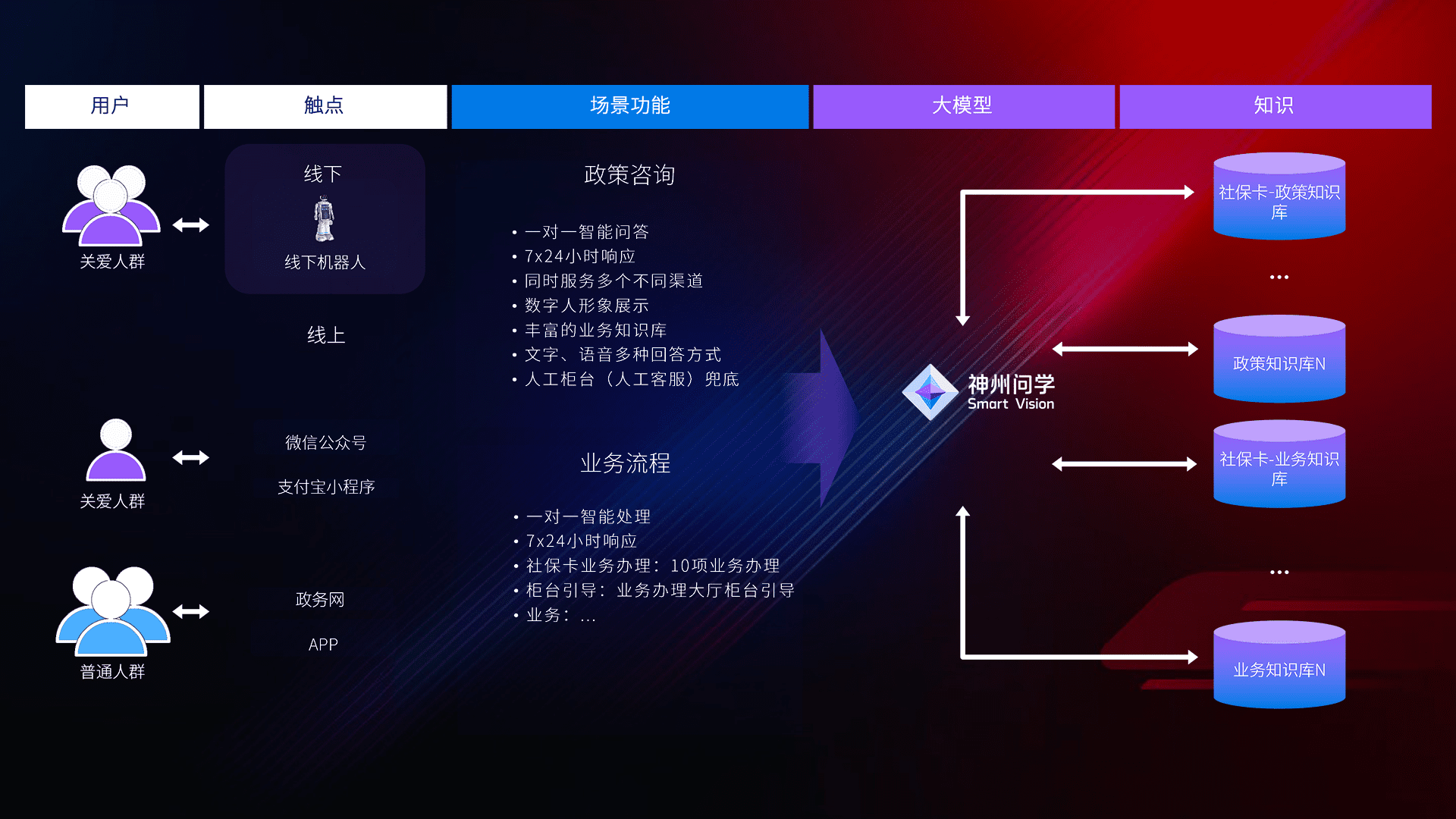 • 线上线下全覆盖:线上提供微信公众号、、、、支付宝小程序、、、政务网、、、、app多种渠道,,,与线下机器人形成完整服务体系。。。。